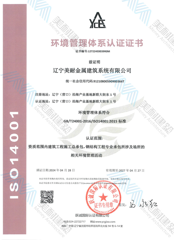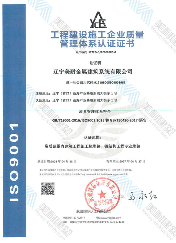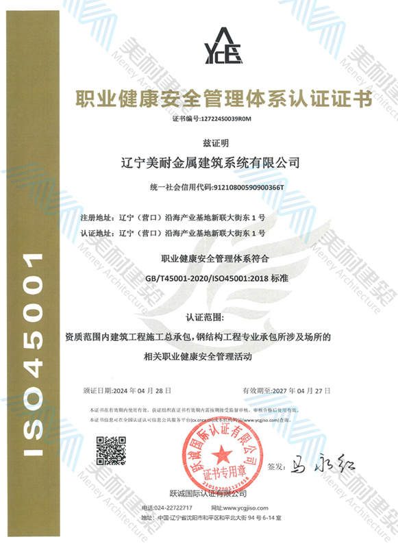 遼寧美耐金屬建筑系統(tǒng)有限公司位于遼寧(營口)沿海產(chǎn)業(yè)基地,專注于預制金屬建筑系統(tǒng)領域,是一家集工業(yè)建筑設計、制作、施工及相關的技術咨詢與服務為一體的綜合性服務企業(yè)。作為國家鋼結(jié)構(gòu)協(xié)會會員、中國建筑金屬結(jié)構(gòu)協(xié)會會員單位與國家高新技術企業(yè),美耐建筑集建筑工程施工總承包、鋼結(jié)構(gòu)工程專業(yè)承包等多種資質(zhì)于一身,并擁有22項鋼結(jié)構(gòu)建筑領域?qū)@?項軟件著作權。